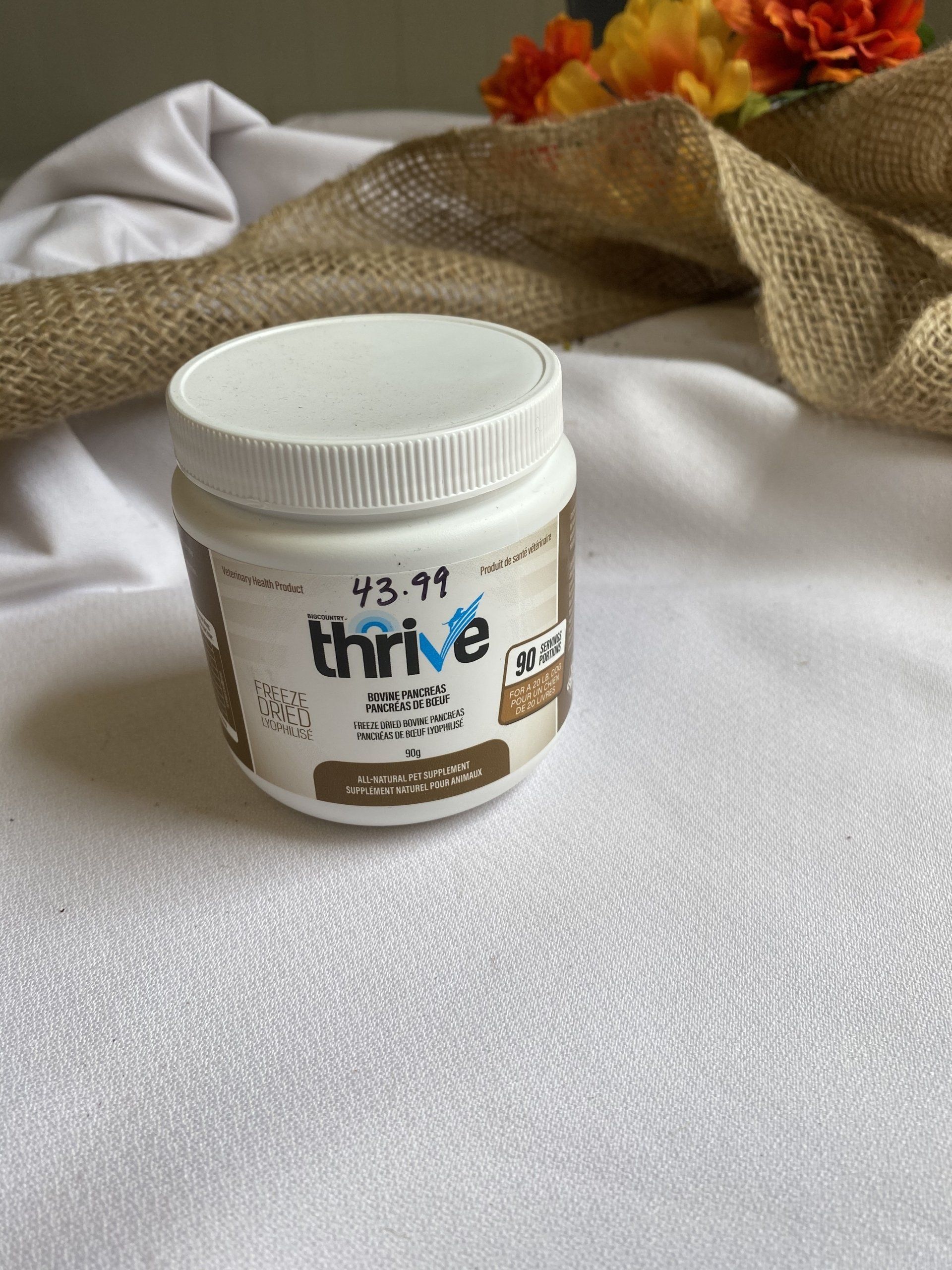 A line of supplements from the makers of Big Country Raw, Thrive products range from fish oil to nutrient powders which help with digestion and provide needed minerals and vitamins when feeding a raw diet.